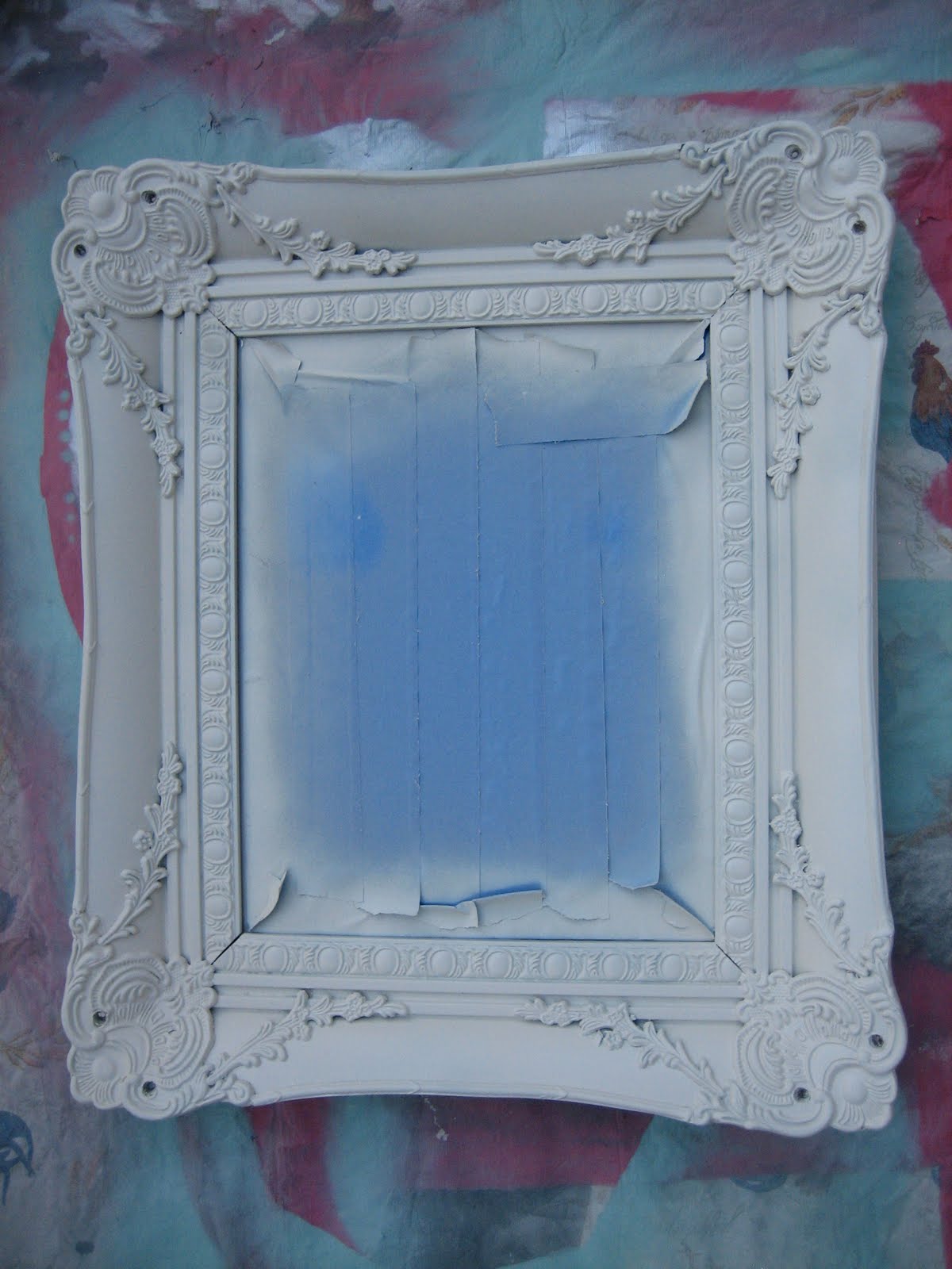 The first thing I did was prime and spray paint the frame with Heirloom White by Rustoleum.