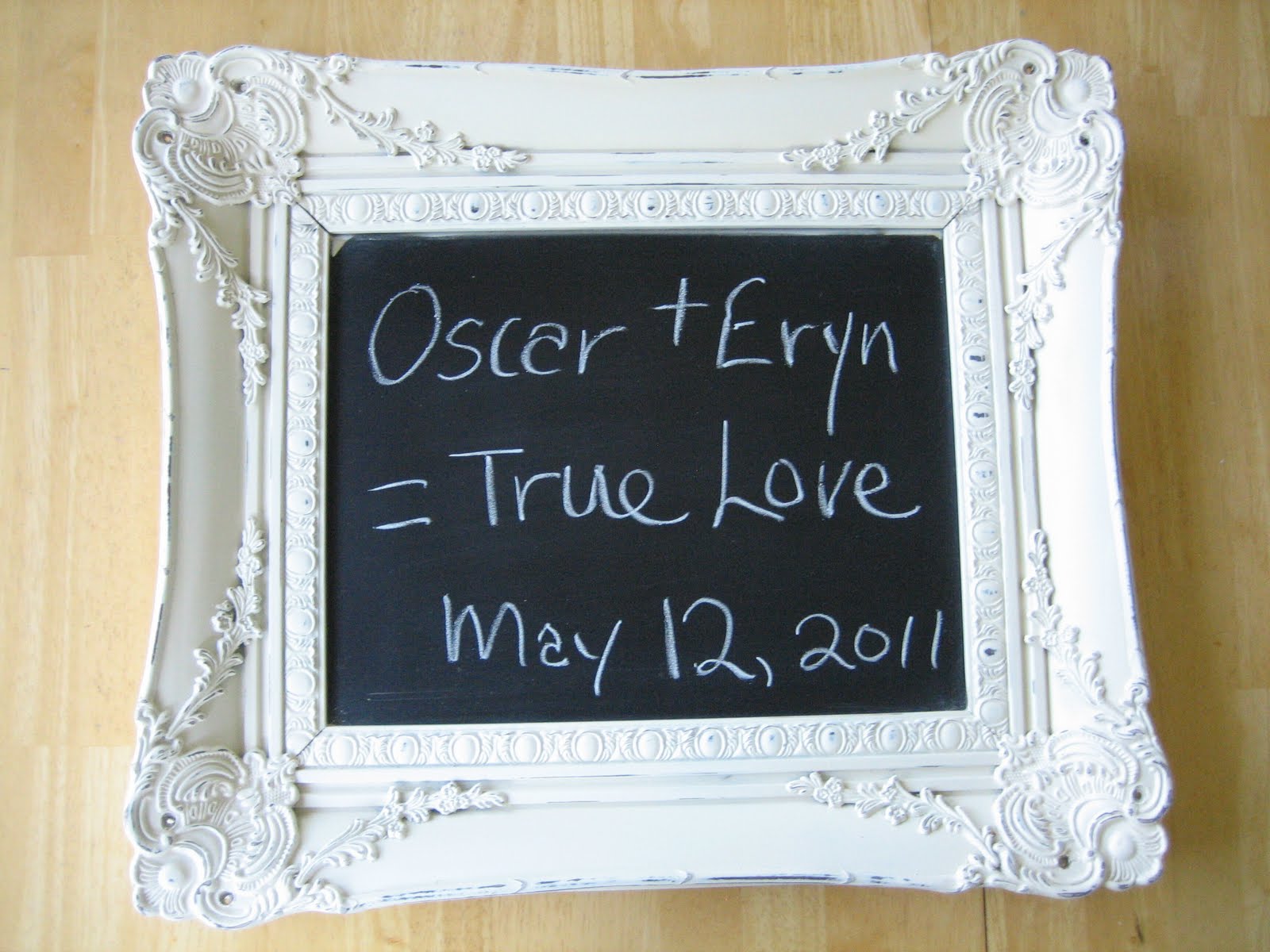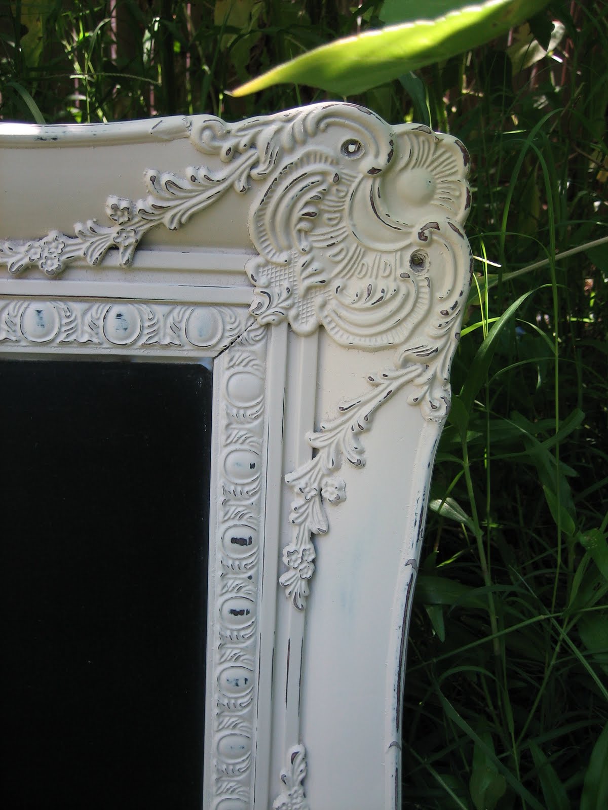 Then I sanded the frame to distress it a bit. FYI: It would be better to distress the frame BEFORE using the chalkboard paint so you don’t accidentally sand off some of the chalkboard part and get really irritated with yourself. (Not that I did that or anything…)
